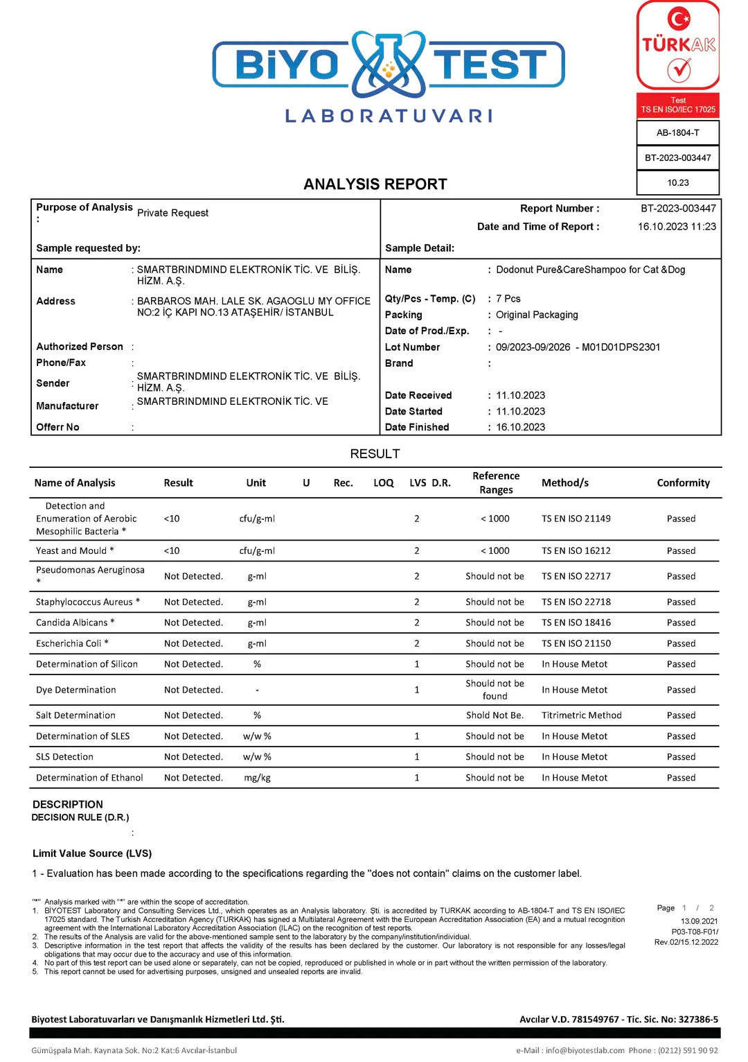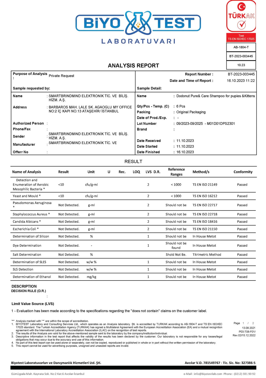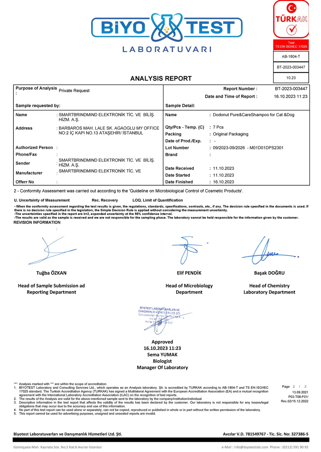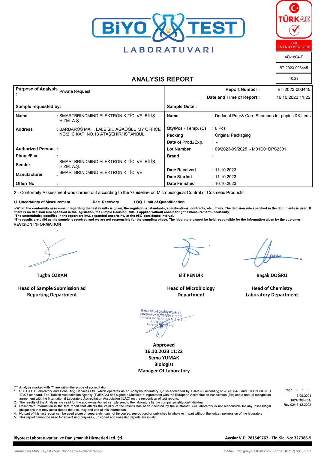 Pet Şampuan ve Bakım Ürünleri Kalite Belgelerimiz